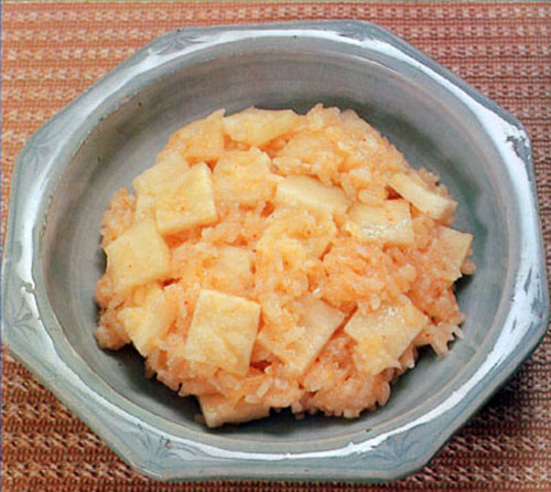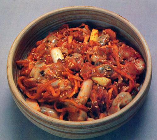 김치에서는 고구마줄기김치, 우엉김치, 전복김치가 특색이 있는데 이 지방 김치의 특징은 북쪽지방과는 달리 젓을 많이 넣고 담그며 국물이 적은것이다.