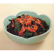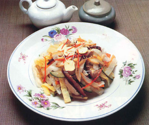 - 5. 홍당무우는 가늘게 썰어 소금물에 데쳐 무치고 참나무버섯과 돌버섯은 가늘게 썰어 간장과 양념을 두고 볶아놓는다.