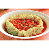 - 5. 초절임한 배추를 꺼내여 물을 갈아가며 한포기씩 깨끗이 씻어서 물을 찌운 다음 갈피갈피에 김치소를 골고루 넣고 맨 겉의 큰잎으로 꼭 돌려싼다.